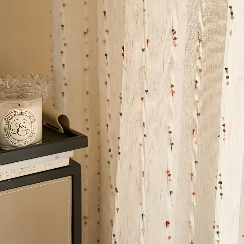 1pc of Single-Sided Non-Embroidered Bohemian Style Colorful Ball Material Window Curtain Coffee Drape Window Decoration