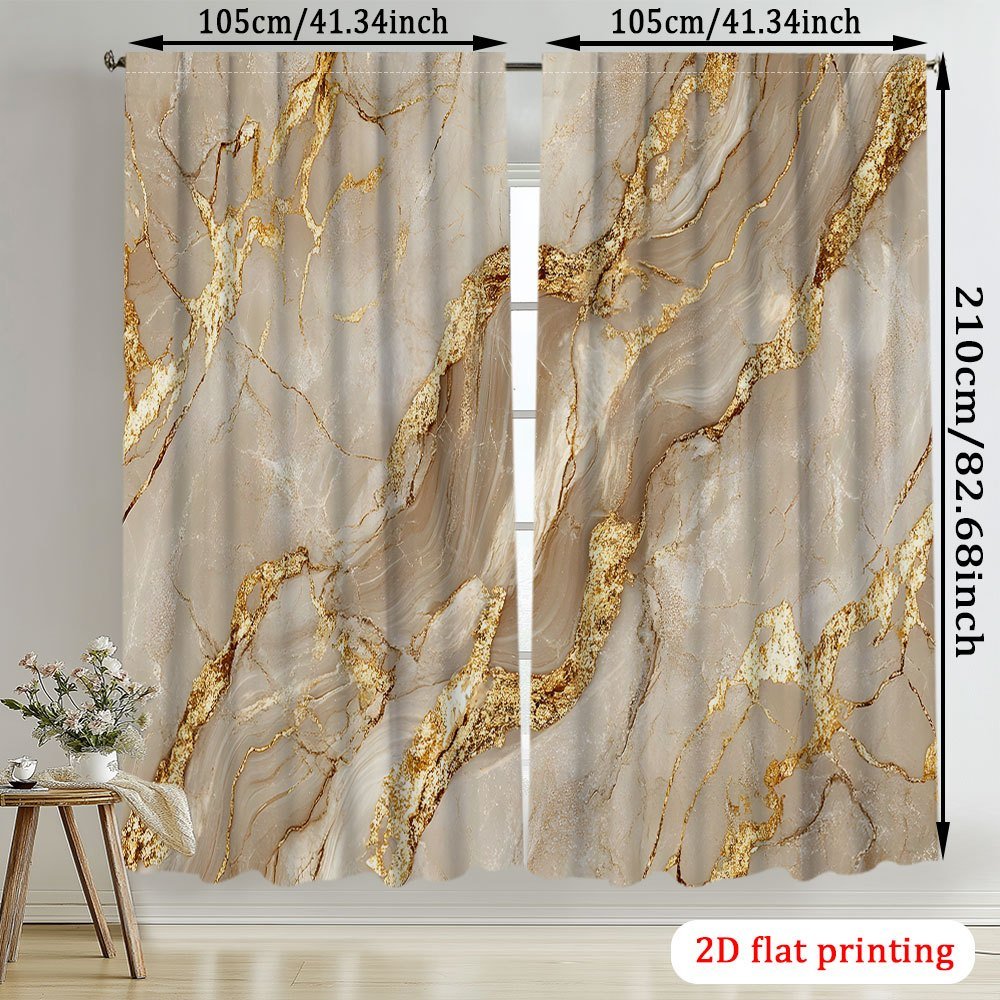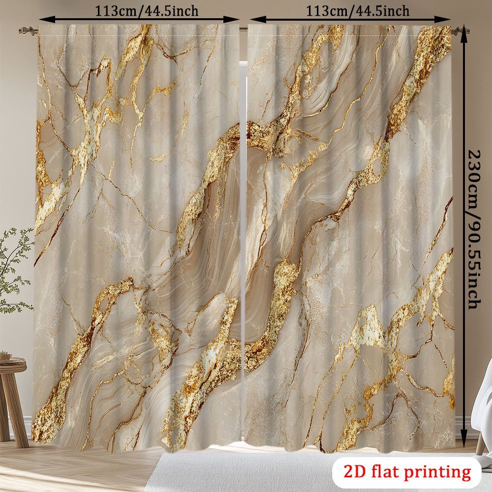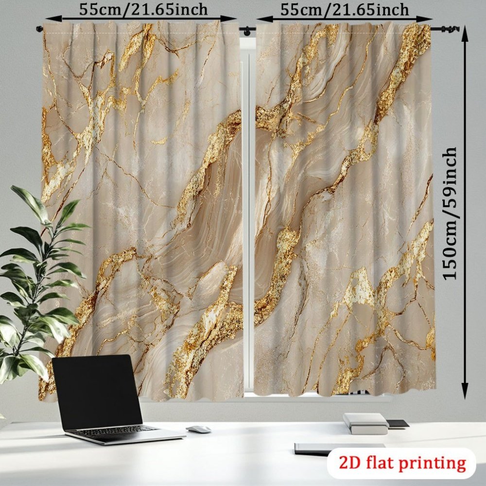 2D Flat – 2D Flat – 2D Set of 2 Elegant Curtains | Golden Textured Marble Pattern, Semi-Transparent Polyester, Suitable for Living Room, Bedroom, and Office, Luxurious, Washable, Provides Privacy, Ideal for New Year and Valentine’S Day