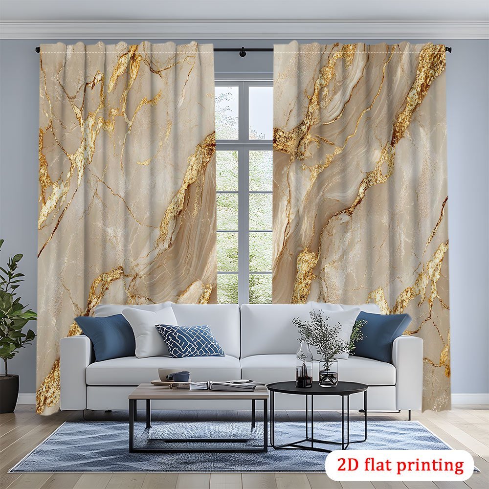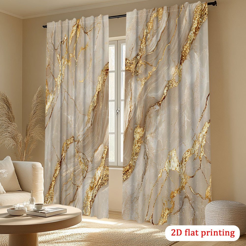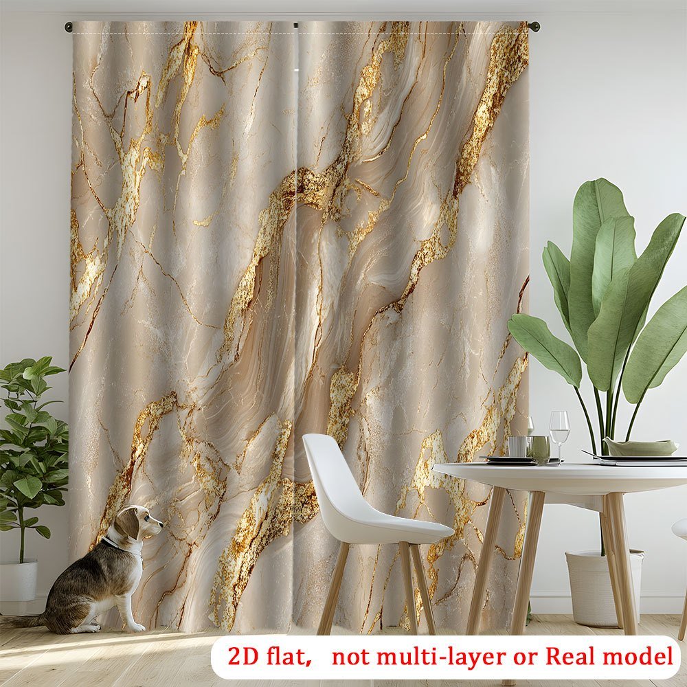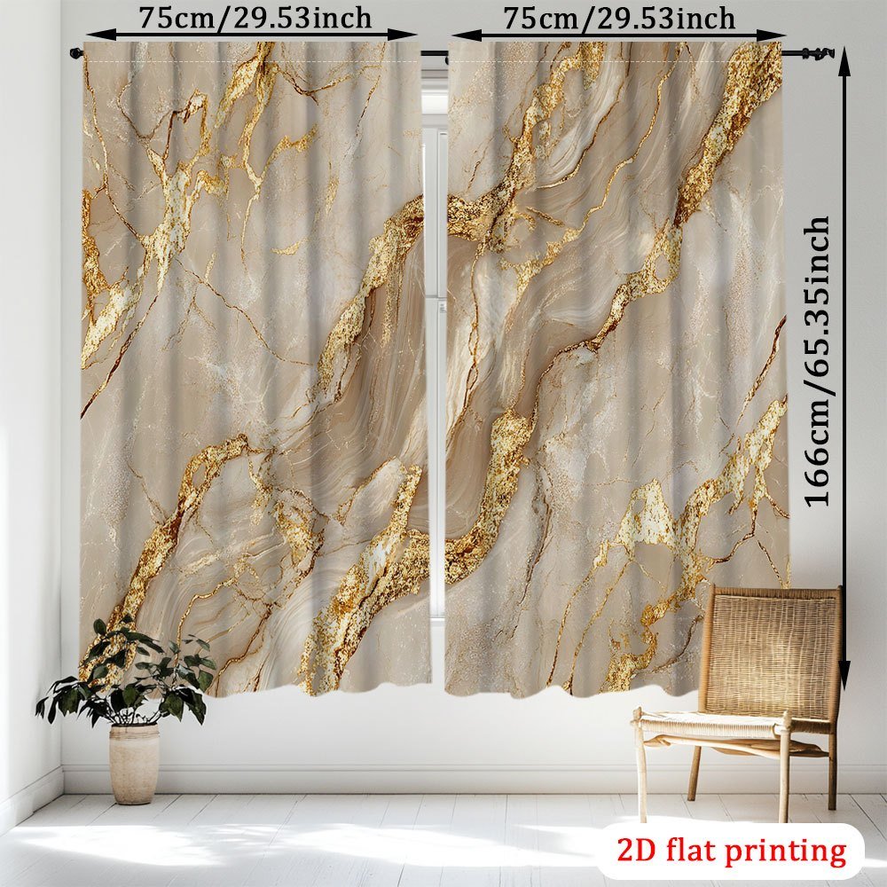 2D Flat – 2D Flat – 2D Set of 2 Elegant Curtains | Golden Textured Marble Pattern, Semi-Transparent Polyester, Suitable for Living Room, Bedroom, and Office, Luxurious, Washable, Provides Privacy, Ideal for New Year and Valentine’S Day