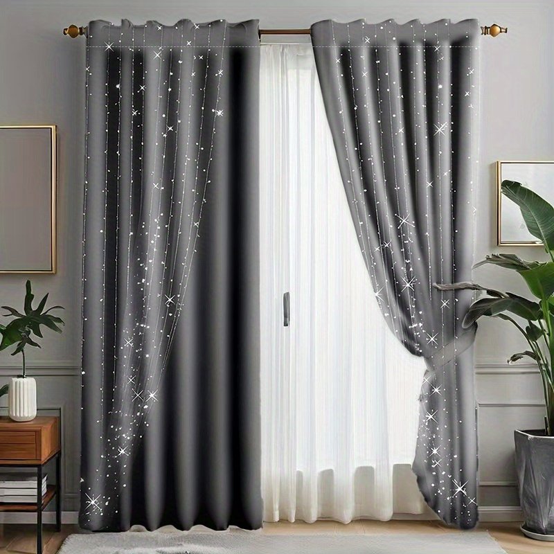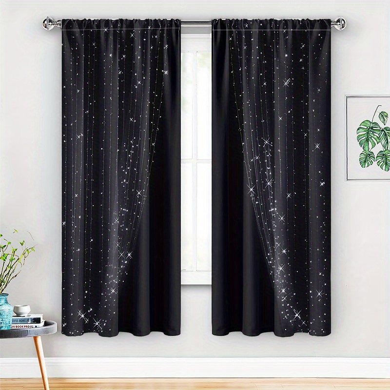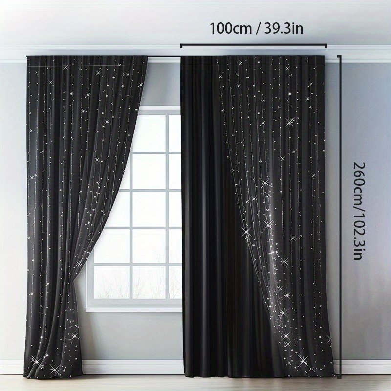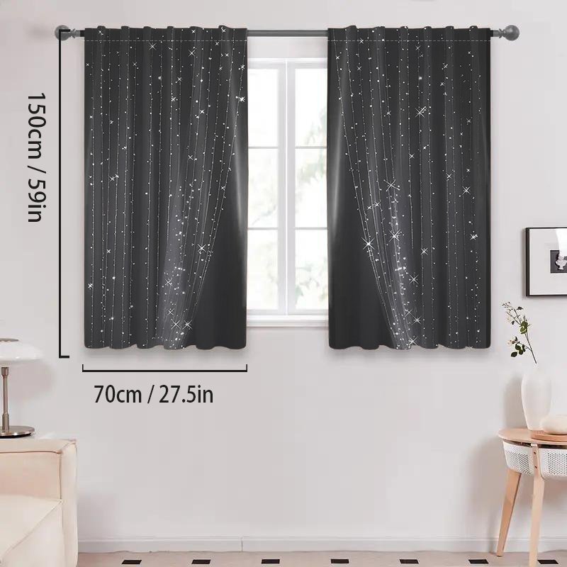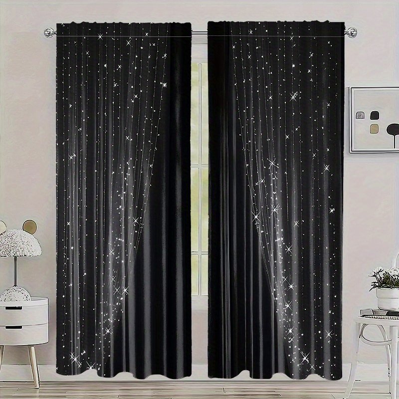2D Flat, 2D Printing 2pcs, Set Starry Sky Blackout Curtains – Soft Polyester Rod Pocket Panels with Celestial Starry Night Design, Easy-Hang for Living Room & Bedroom Decor, Curtains for Living Roo