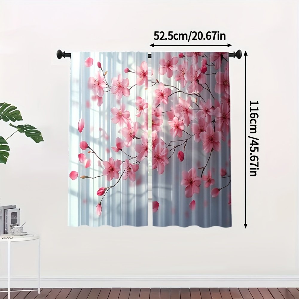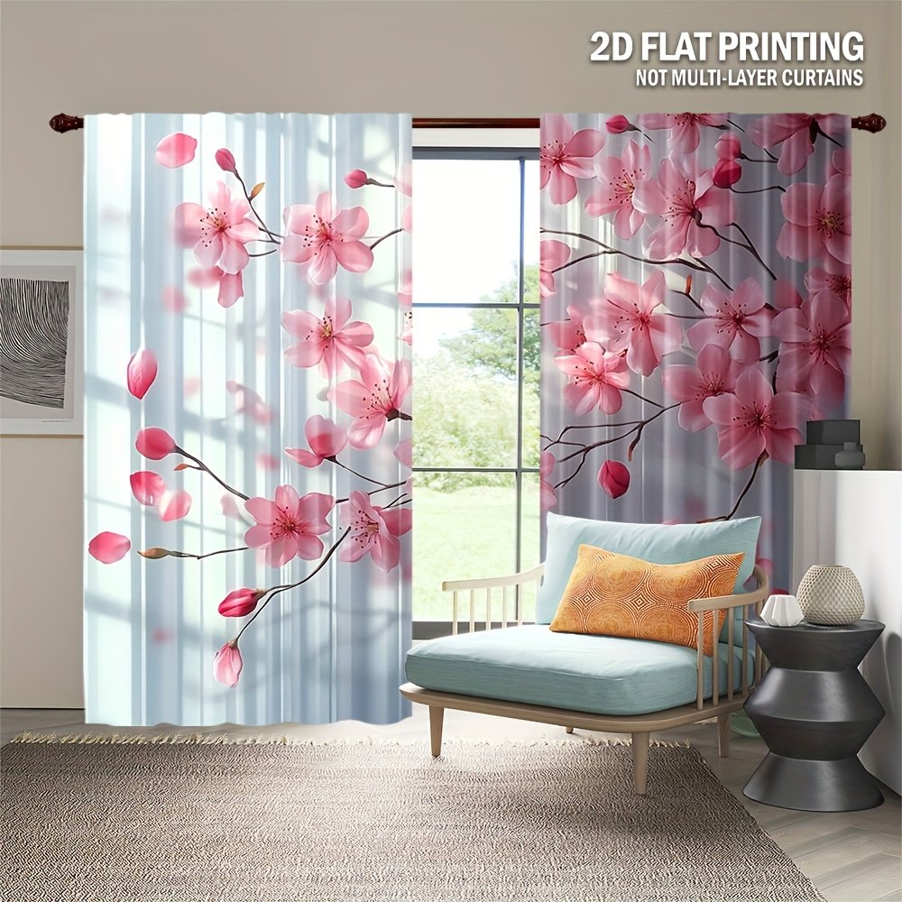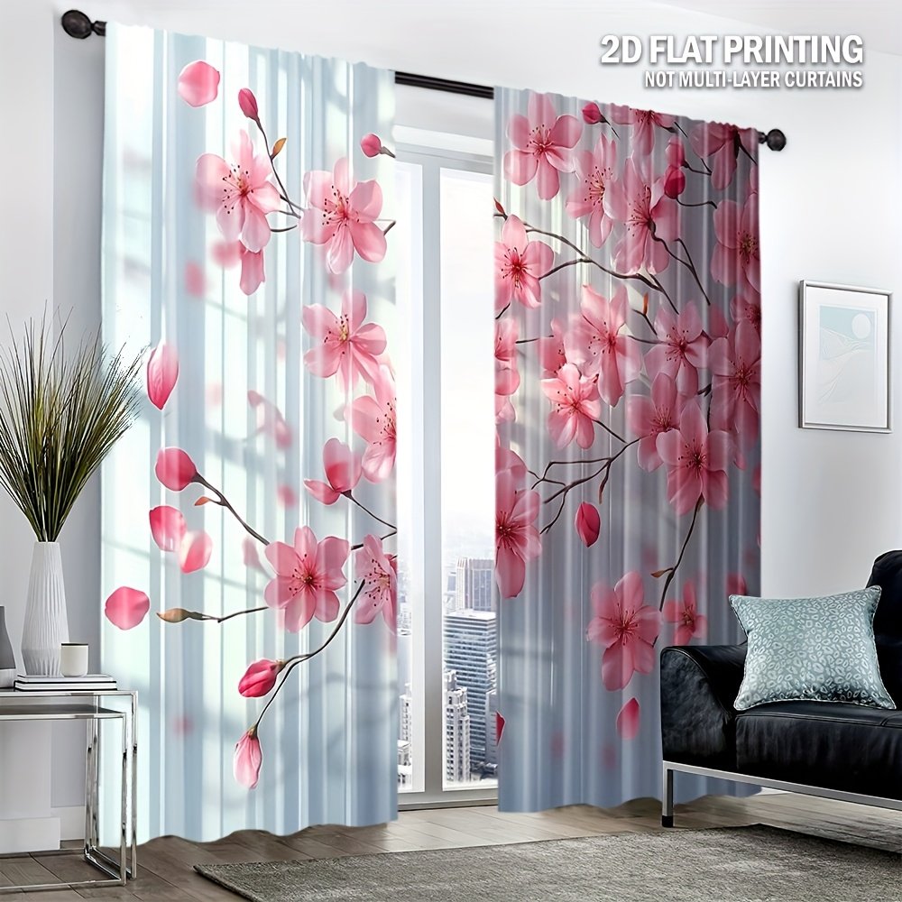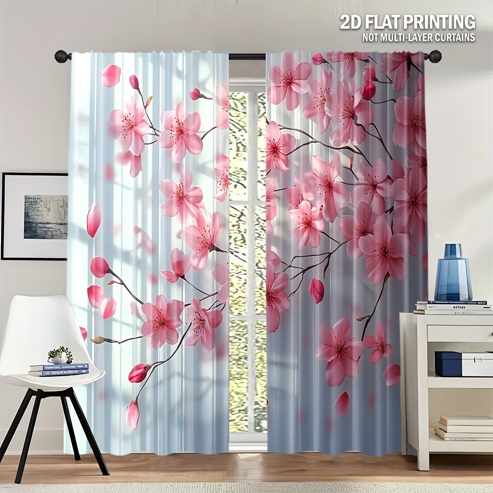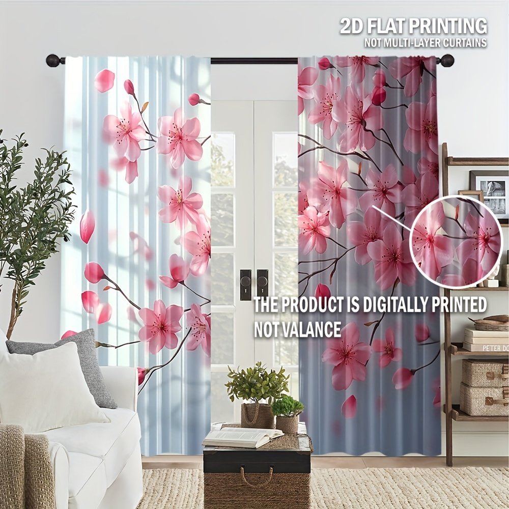 2pcs, All-season Modern Doorway Curtains, Pink Peach Blossom Floral Print, Machine Washable Fabric, Perfect for Kitchen, Living Room and Study (Without Rod)