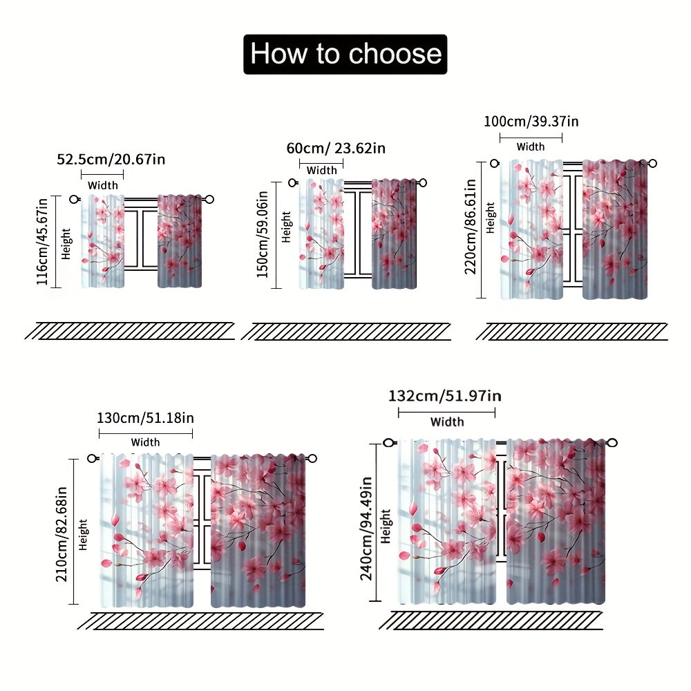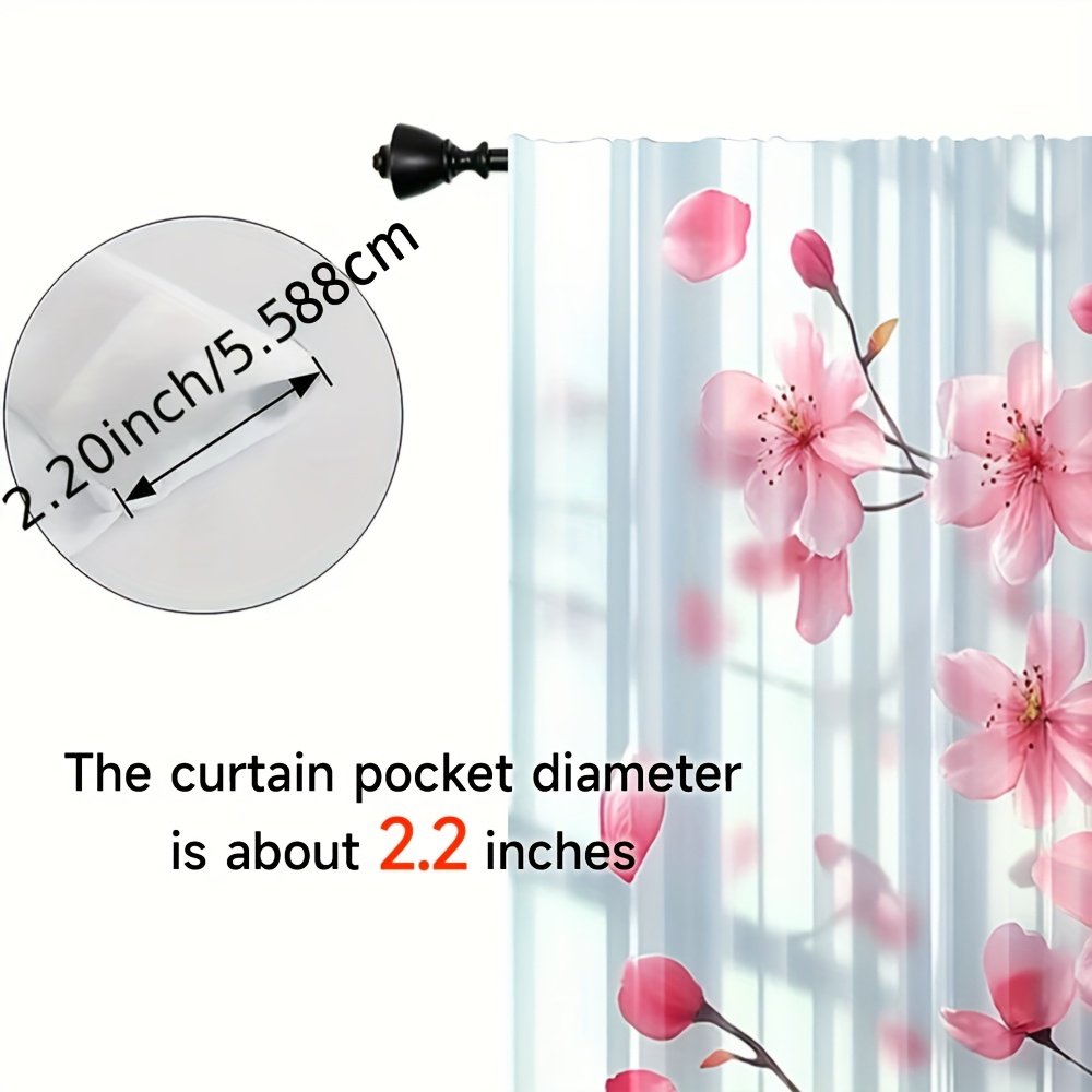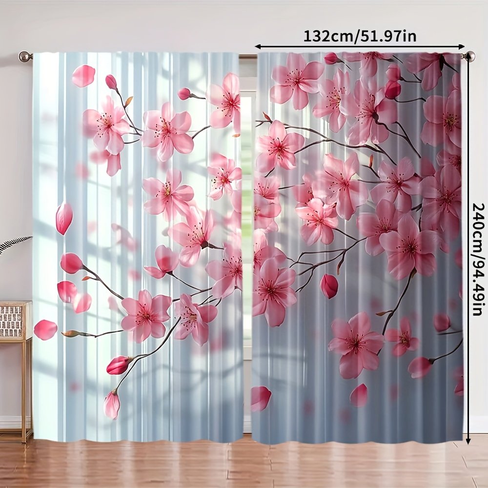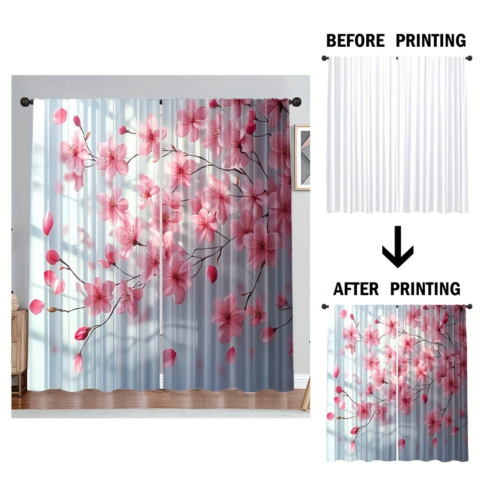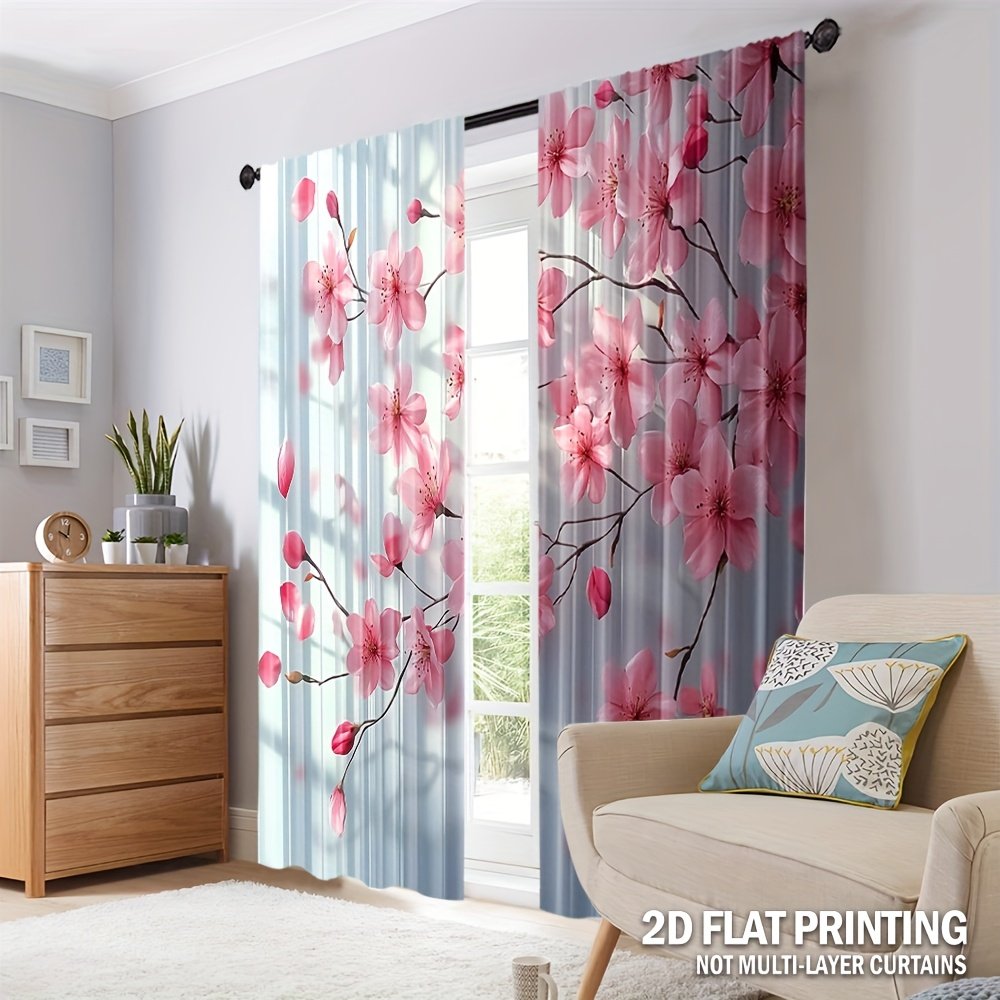 2pcs, All-season Modern Doorway Curtains, Pink Peach Blossom Floral Print, Machine Washable Fabric, Perfect for Kitchen, Living Room and Study (Without Rod)
