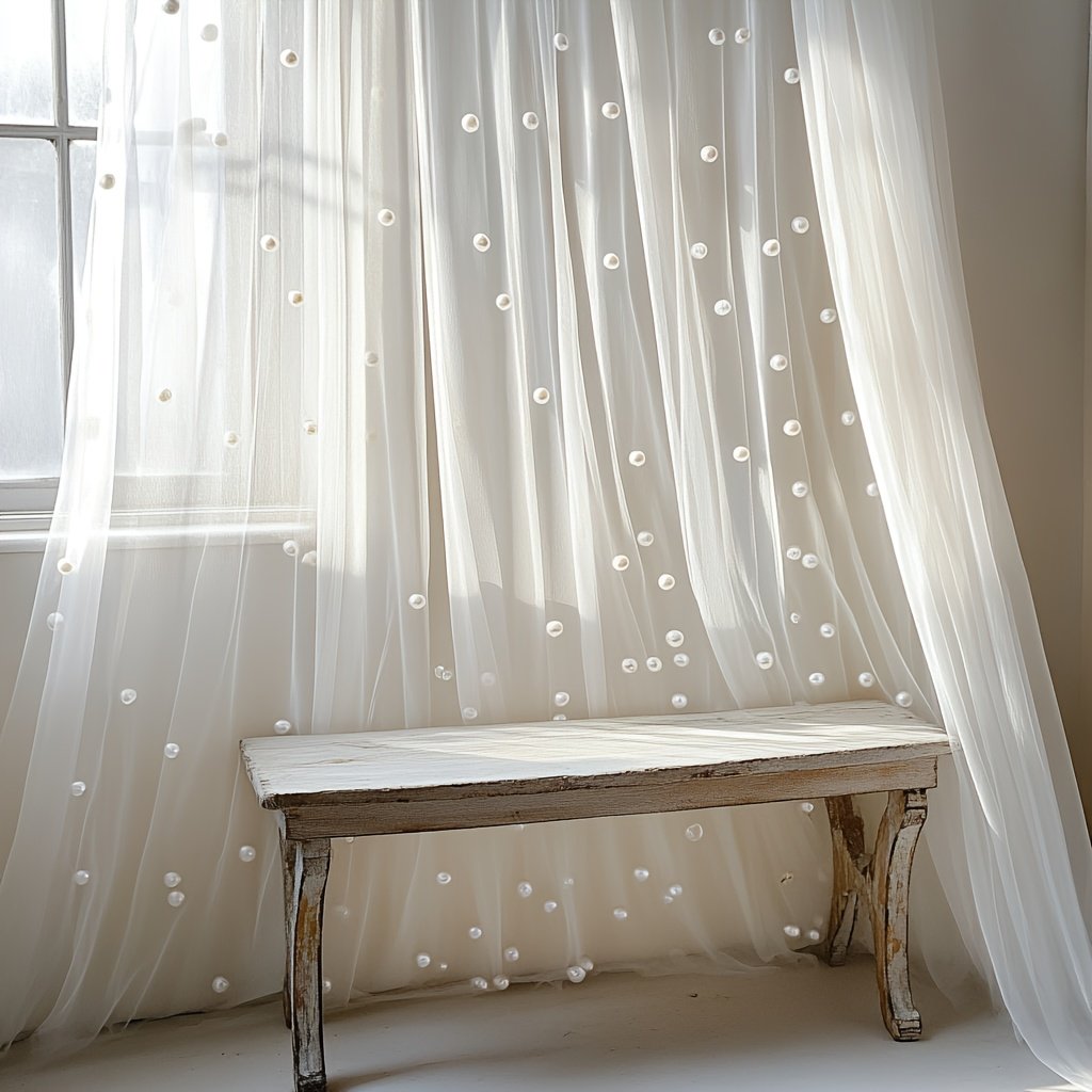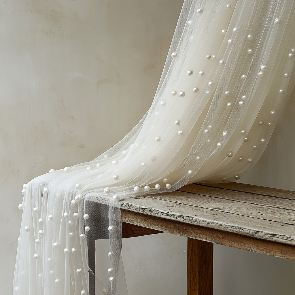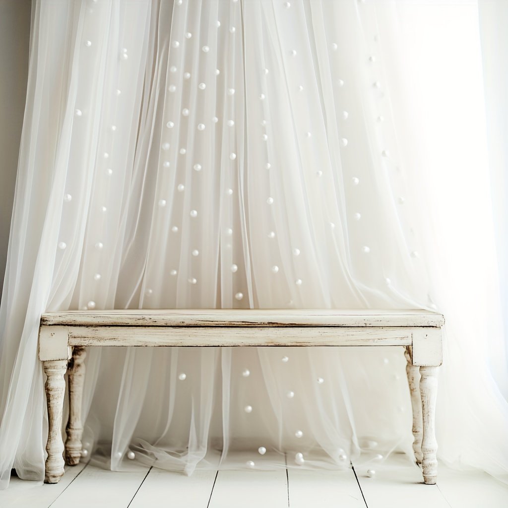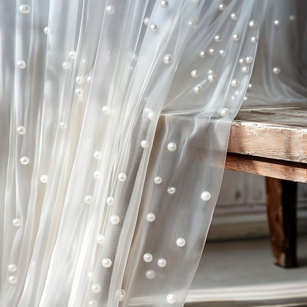 A white pearl sheer tulle, suitable for home decoration, wall decoration, windowsill arrangement, tabletop covering, and various holiday event decoration scenarios, etc. It is used for multi – scene decoration. Dimensions: 160*300cm/5.25*9.8ft